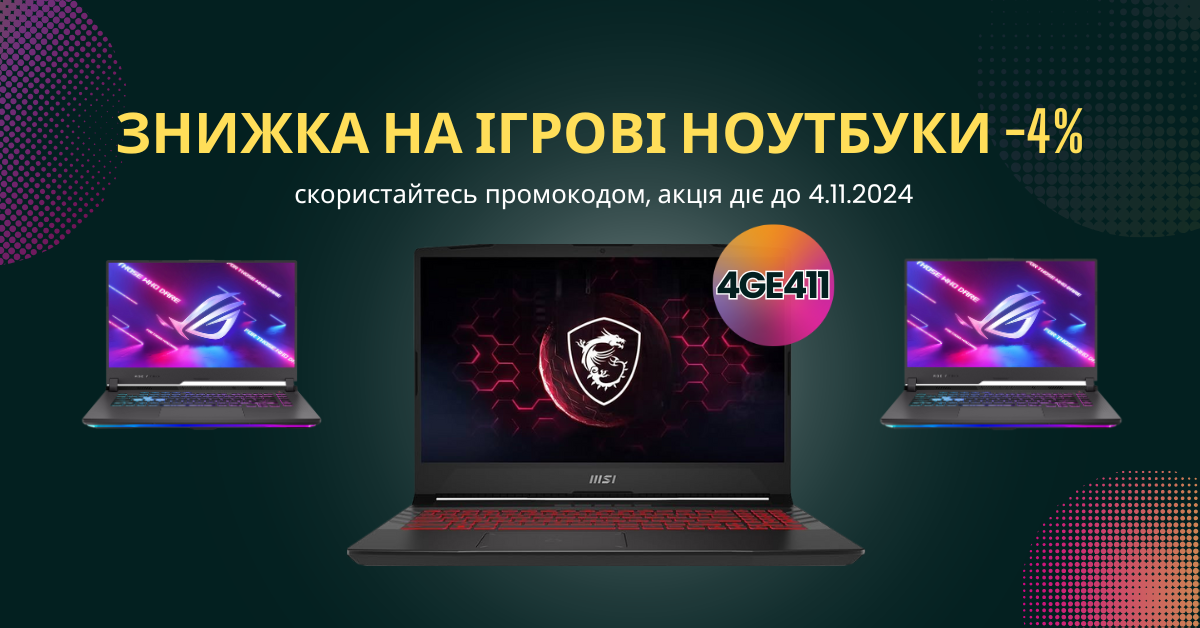 Спешим сообщить отличную новость! CompBest дарит скидку -4% на все игровые ноутбуки!