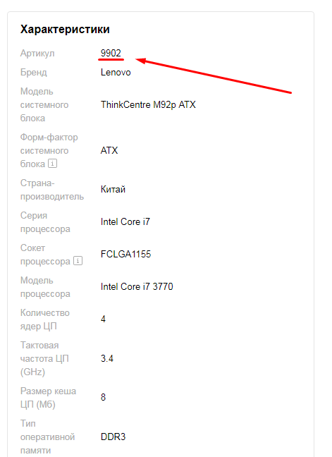 Каждая товарная модель на сайте имеет артикул – 3-7 цифр, которые находятся под заголовком товара или в колонке характеристик справа от описания товара (см. скриншот). Для быстроты поиска товара сообщайте артикул нам, если у Вас есть вопросы по конкретном товаре.