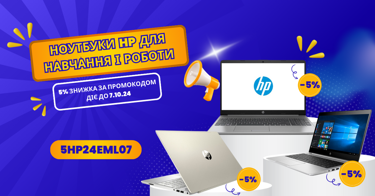В интернет-магазине CompBest большой выбор ноутбуков HP! До 7 октября действует скидка -5% на все модели. Используйте промокод: 5HP24EML07