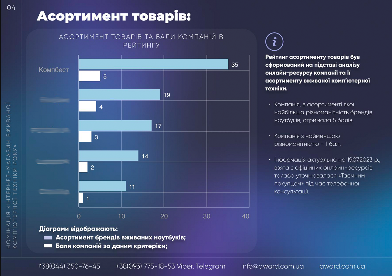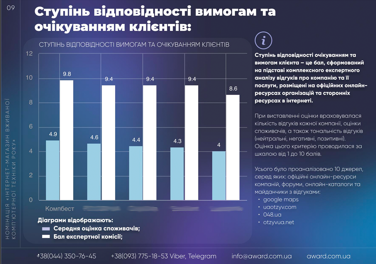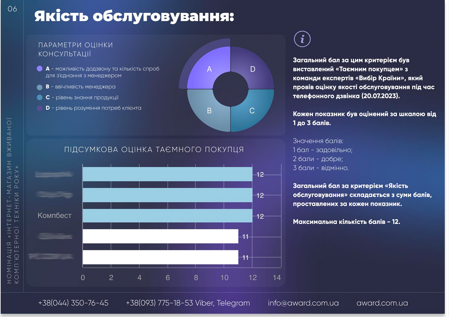 За результатами підрахунку, ми отримали від експертів найвищу оцінку серед інших магазинів України за такими показниками: