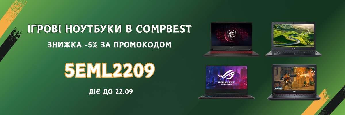 Оновіть своє ігрове обладнання зі знижкою 5%! Тільки до 22 вересня ви можете придбати будь-який ігровий ноутбук зі знижкою, використовуючи промокод 5EML2209.